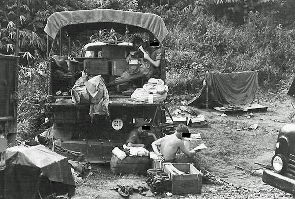 This is the REAL story of how the Indos were defeated. The gallant lads of the Mobile Bath and Laundry Unit provided a much appreciated service – I should know, is that me lurking under that piece of masking tape in photo 4 ? If not, the image is definitely of an an SF guy going by the dog tags and morphine syrettes hanging around his neck !