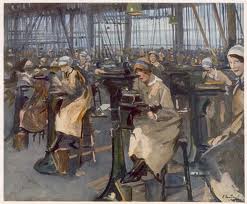 The Scottish National Portrait Gallery in Edinburgh has re-opened in its dramatic, neo gothic palace on Queen Street. Ruskin would be delighted. It is a rather rambling interior and quite difficult to navigate. I wondered about with nothing really grabbing my interest, until I stumbled upon, entirely by good fortune, the exhibition of war paintings by Sir John Lavery. Most of them I had not seen before and had never seen them collected together like this. Many of the works were on loan from the Imperial War Museum.