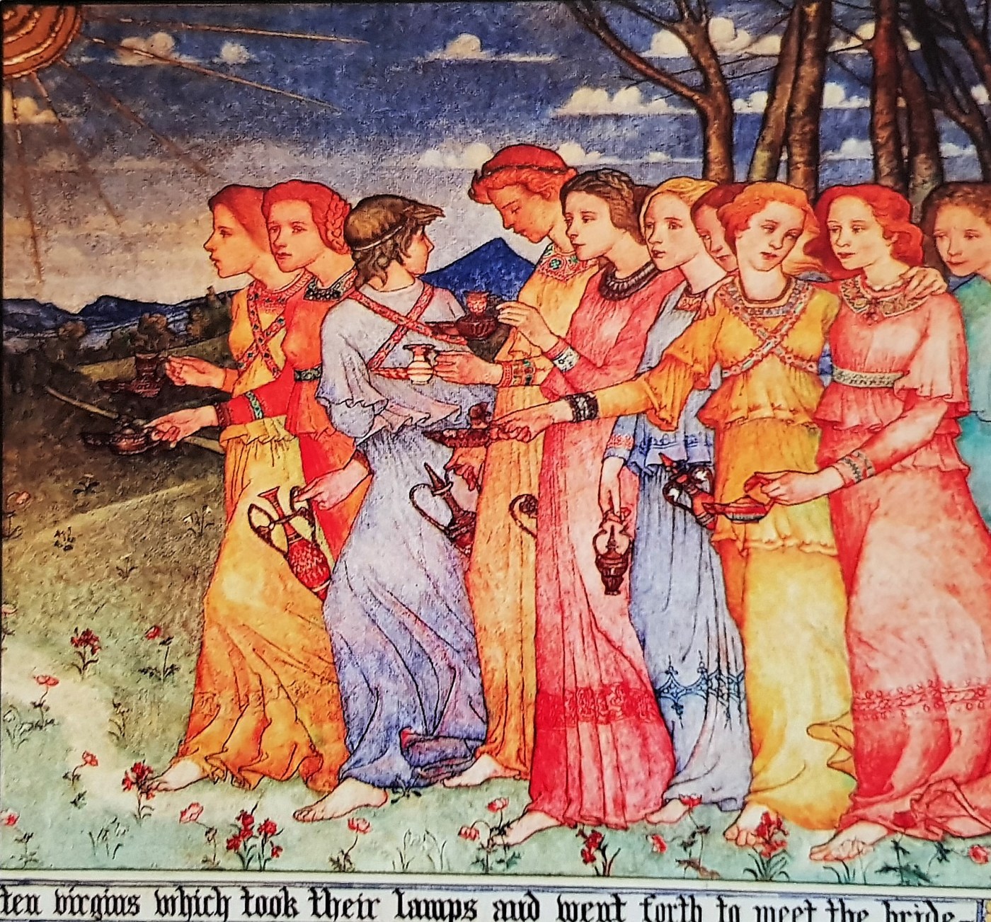 **** “Then the Kingdom of Heaven will be like ten virgins, who took their lamps, and went out to meet the bridegroom. Five of them were foolish, and five were wise. Those who were foolish, when they took their lamps, took no oil with them, but the wise took oil in their vessels with their lamps. Now while the bridegroom delayed, they all slumbered and slept. But at midnight there was a cry, “Behold! The bridegroom is coming! Come out to meet him!” Then all those virgins arose, and trimmed their lamps. The foolish said to the wise, “Give us some of your oil, for our lamps are going out.” But the wise answered, saying, “What if there isn’t enough for us and you? You go rather to those who sell, and buy for yourselves.” While they went away to buy, the bridegroom came, and those who were ready went in with him to the marriage feast, and the door was shut. Afterward the other virgins also came, saying, “Lord, Lord, open to us.” But he answered, “Most certainly I tell you, I don’t know you.” Watch therefore, for you don’t know the day nor the hour in which the Son of Man is coming.” Matthew 25:1-13
