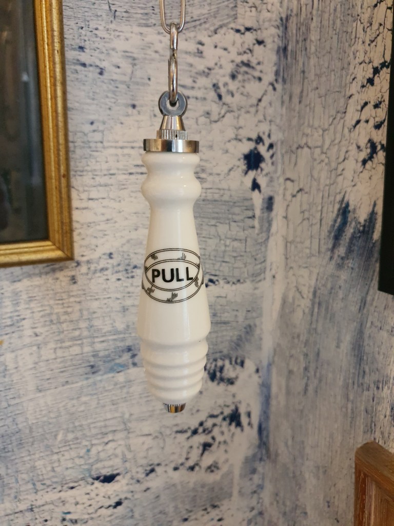 Amazon describes it more correctly as a “Victorian traditional ceramic & chrome flush pull for high-level cistern.”