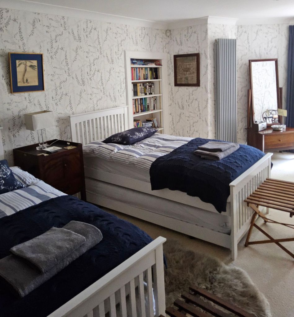 Her apartment, which she has let to us for the month of the August Edinburgh Festival, is just gorgeous and astonishing. In a listed building, not far from the city centre, it’s walls are adorned with original artwork and abundant sculptures. She must at least be an interior decorator for the decor is just about perfect with soft greys and quite unique wallpapers. Well, just look at the photographs – we are exceptionally fortunate to have found Morag’s place!