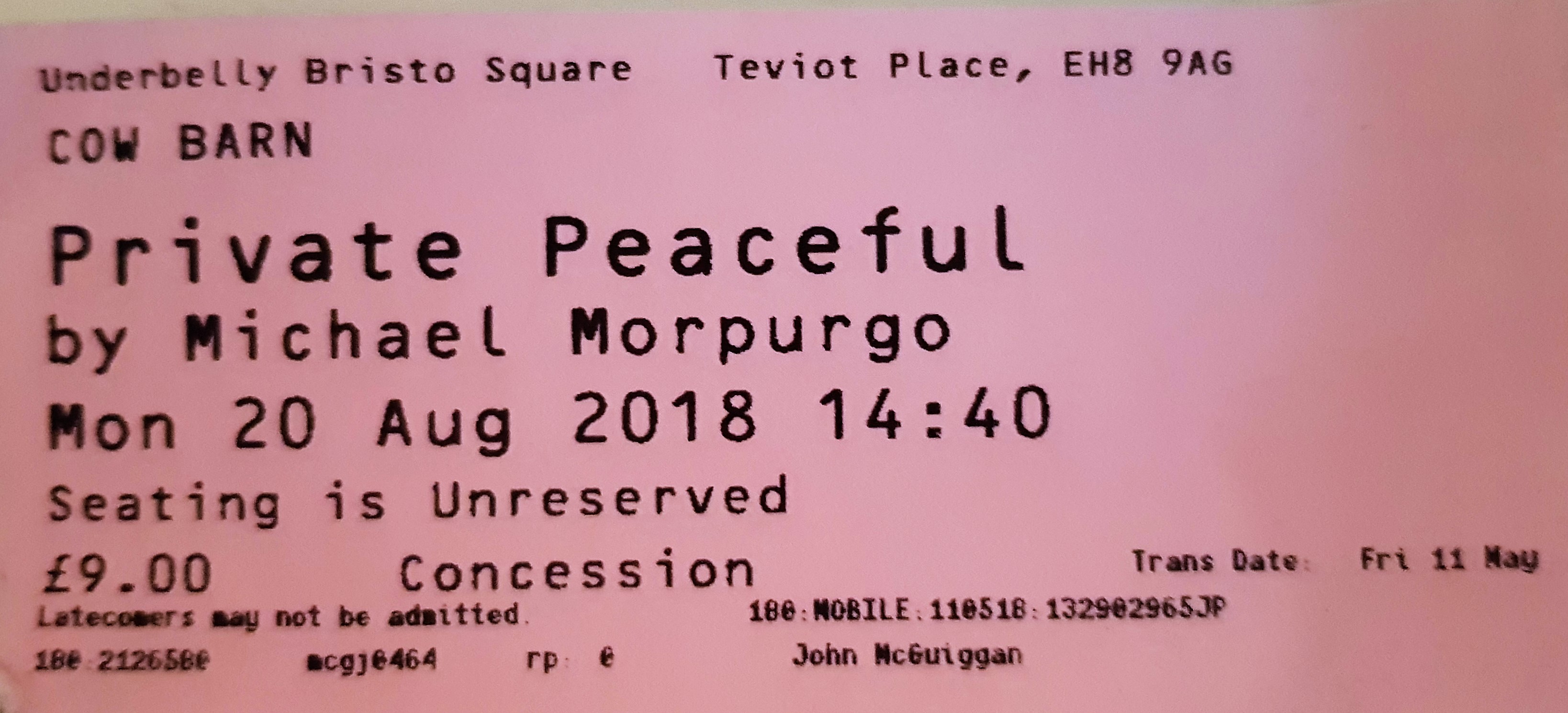 Private Peaceful – a review of Michael Morpurgo’s plat at the Edinburgh Festival